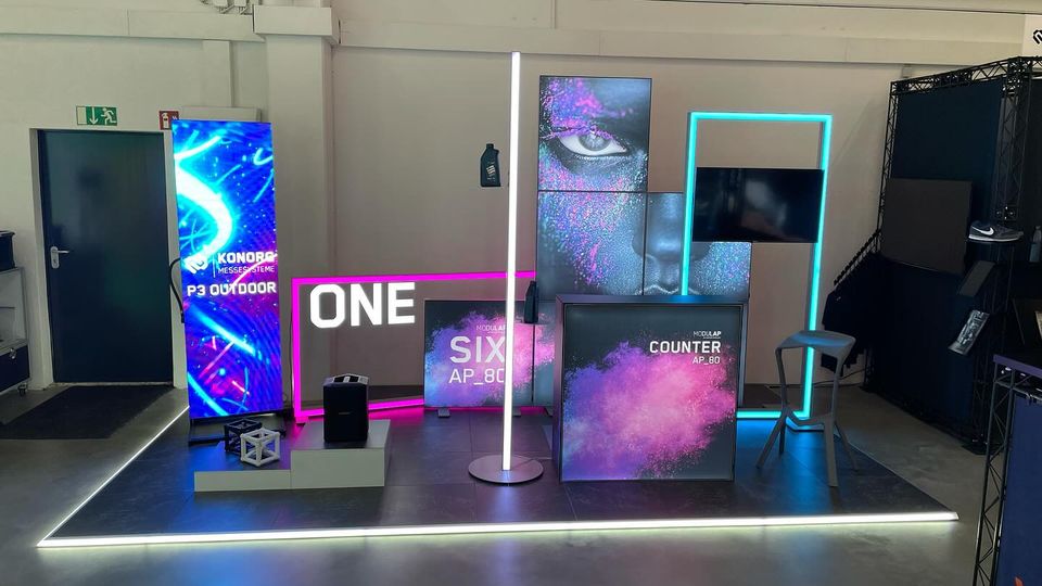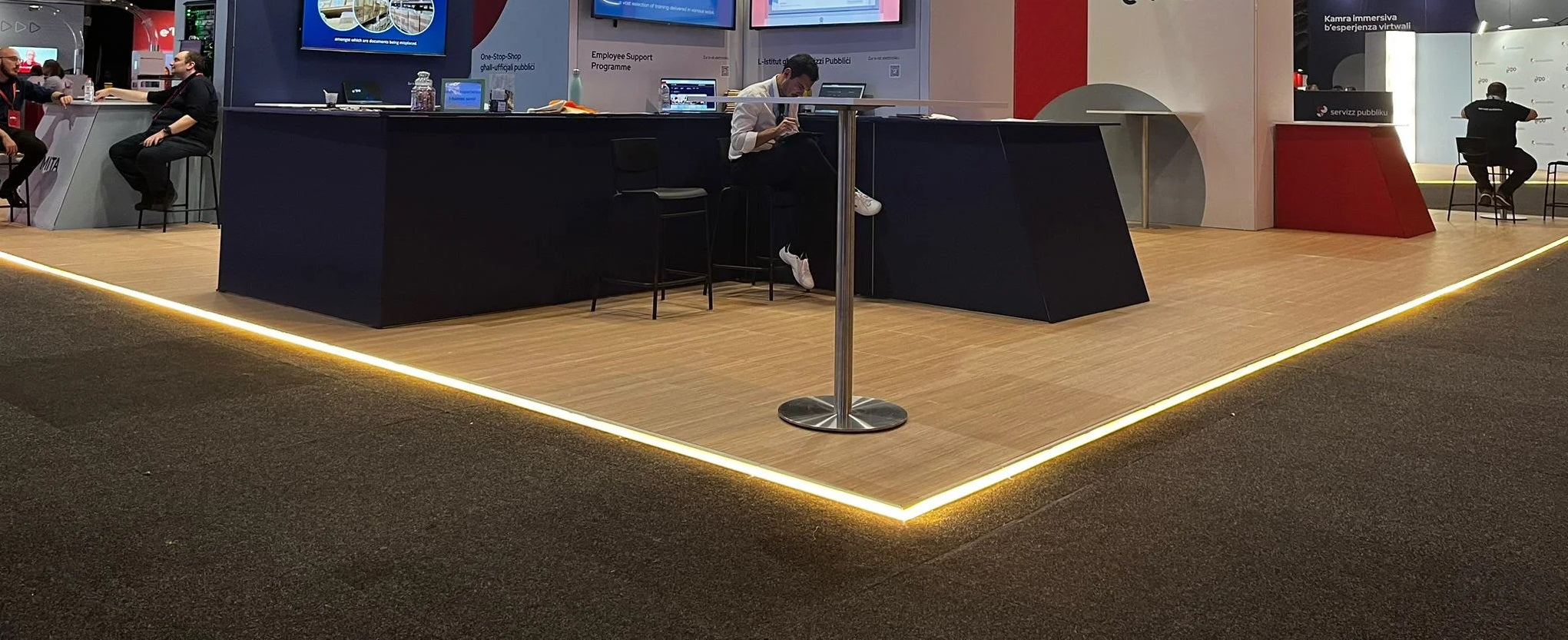 Up to 25sqm Modular Floor Kit with Custom Topper and LED Edging on all 4 sides.