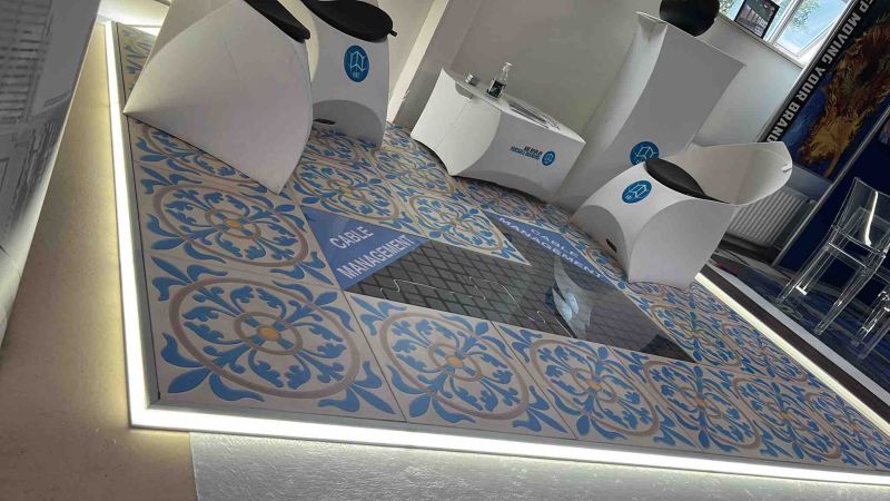 This innovative concept allows entire floors to be customised with graphic inserts, providing a fresh and dynamic approach to floor branding on a portable, modular, and moveable flooring system. Perfect for brand launches, events, exhibitions, pop-up stores, retail activations, and more, this system is ideal for businesses looking for a professional, eye-catching flooring solution that can be used at multiple events or even on a daily basis.