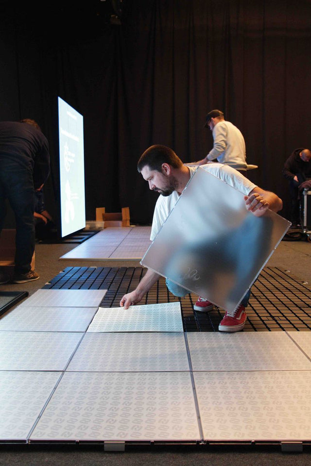 The clear tiles are primarily used for custom graphics or slogans buyers want to be visible when the flooring is on show, however they are also perfect for businesses, exhibitions or for those looking to portray their own unique message or company in a creative way.