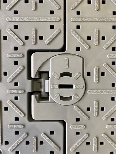 Designed to be implemented with minimum manpower and no tools, the T-peg system with Locking feature allows for rapid deployment and anti-detachment system especuially when movable loads are carried (e.g: Temporary Car parks or Vehicle trackway)